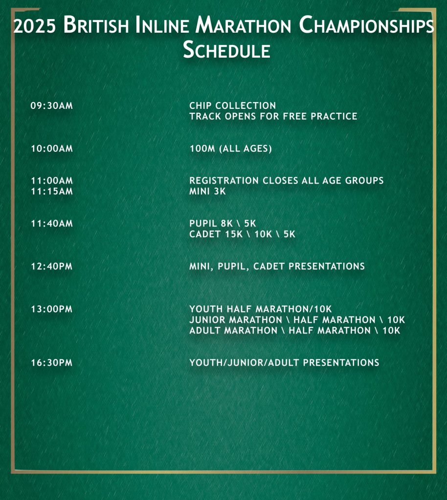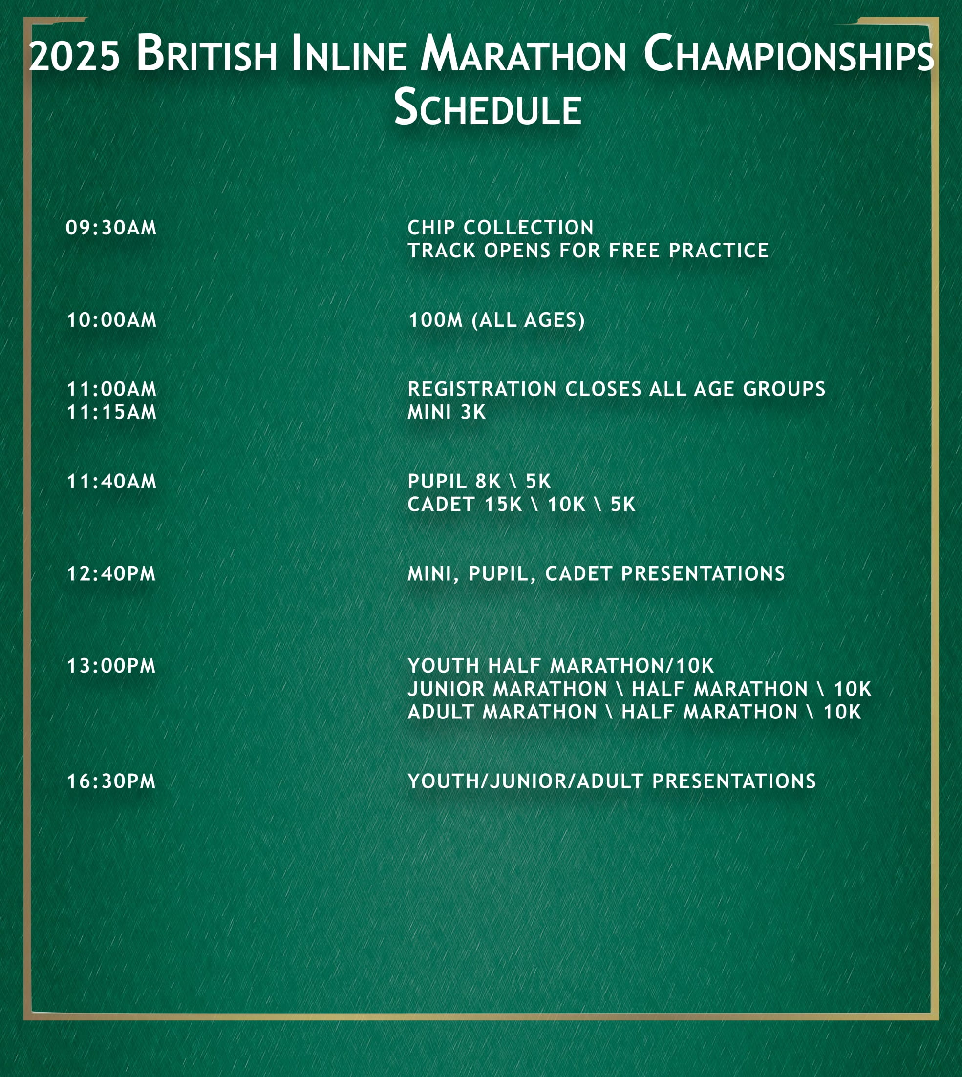 2025 BRITISH INLINE MARATHON CHAMPIONSHIPS PROVISIONAL EVENT SCHEDULE